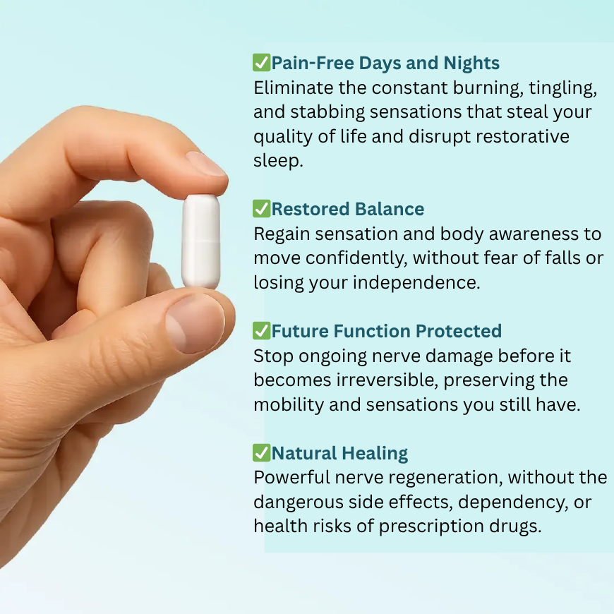 Fortunately, a groundbreaking nerve regeneration supplement, developed through advanced neurological research, is helping people relieve pain and restore sensation. It's made with pharmaceutical-grade ingredients in clinically effective doses.