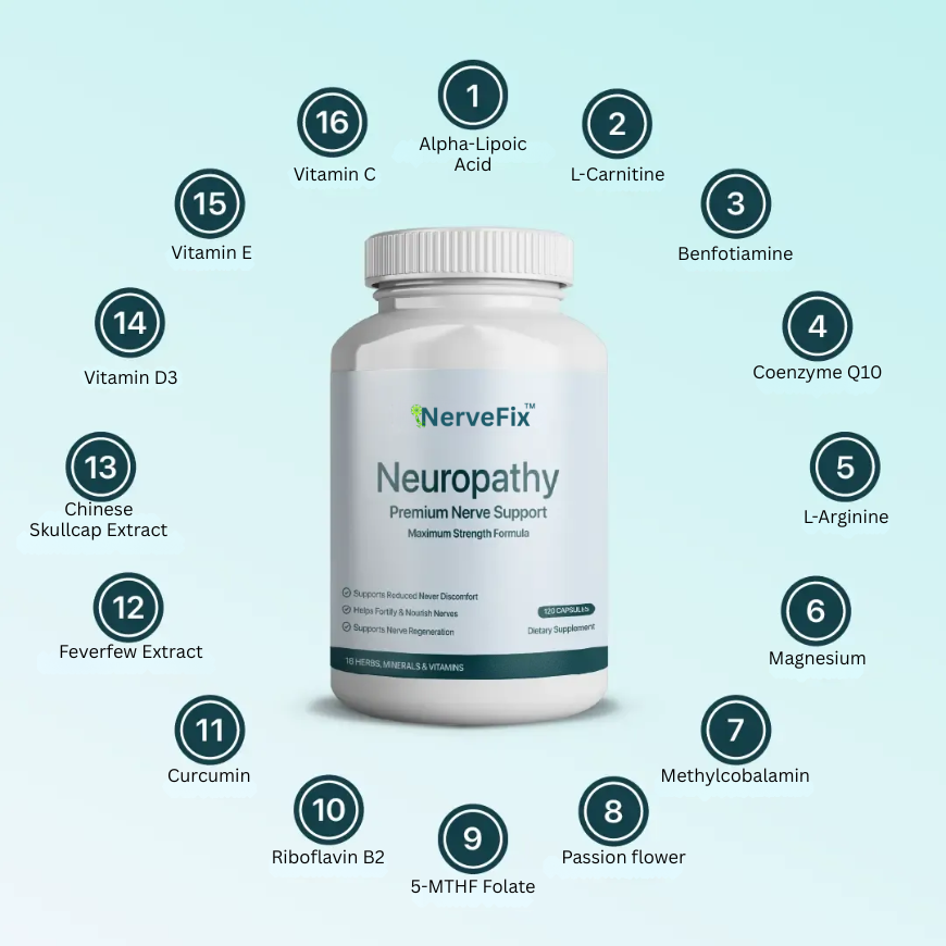 Our comprehensive formula combines B-vitamin complexes, antioxidants, anti-inflammatory agents, and circulation boosters that work together synergistically to promote maximum nerve healing.